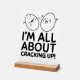 Trae algo de humor desenfadado a tu escritorio con este cartel de "I'm All About Cracking Up". Con dos alegres huevos personalizados, es la combinación perfecta de juego de palabras y juego de palabras. Ideal para los amantes del humor de la comida, de la decoración peculiar o de una sonrisa diaria, este cartel de escritorio es un buen comienzo de conversación y un regalo divertido para compañeros de trabajo, amigos o familia.