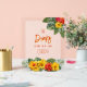 Opaque acrylic bar sign for a tropical themed wedding reception or other event. Yellow and orange hibiscus flowers and big leaves decorate this 8x10 inch sign with red-orange text. Purchase with a wooden holder, or not.