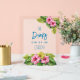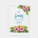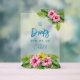 Opaque acrylic bar sign for a tropical themed wedding reception. Pink hibiscus flowers and big leaves decorate this 8x10 inch sign with sea blue text. Buy with a wooden holder, or not.