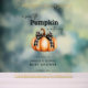 Este elegante cartel de acrílico presenta una calabaza encantadora atada con un arco iris de doncella negra y acentos dorados brillantes. Perfecto para las duchas de otoño, este cartel de "A Sweet Little Pumpkin is on the Way" le da un toque cálido de temporada a su decoración de celebración.