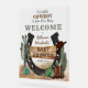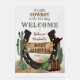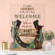 "Un niño pequeño está en camino" y sabemos que estás tan emocionado! Celebra que mamá (o sus padres) estén al estilo rústico occidental de broma de vaca con este niño diseño "Baby Shower". Cuenta con una base de arena acuática con numerosos cactus, una herradura, botas y gorra de vaquero junto con un rústico cartel de madera anunciando el "Baby Shower" en la parte delantera. Diseño compuesto por Holiday Hearts Designs.