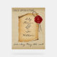 Retroceda en el tiempo, a la caballerosidad y el romance con nuestro Rótulo de Boda de sellos de lana de rollo medievales de Once Upon A Time Fantasy. Diseñado con una atención exquisita a los detalles, se trata de un lugar de lo más antiguo, con un rico pergamino (falso) de antaño adornado con acentos negros y un auténtico sello de cera roja con cuerdas. Tipografía de escritura elegante.