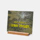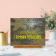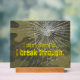 Detail: 8 x 10 inch army green camouflage and cracked glass background that compliments the mantra nicely with wood block stand