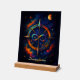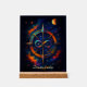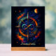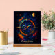 Design: 8 x 10 inch radiant infinity compass with colorful night sky; abstract design with wood block stand