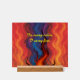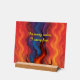Detail: 8 x 10 inch colorful flames painted on acrylic with wood block stand