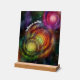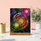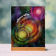 Detail: 8 x 10 inch colorful galaxies in motion, symbolizing the energy within — printed on acrylic with a wood block stand