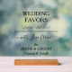 Favores de matrimonio por favor, tomen uno está escrito en la parte superior de la tipografía negra con un fondo claro. Con amor de la novia y el novio está escrito en escritura y tipografía en cursiva negra. Insertar los primeros nombres de la pareja. Mesa minimalista y elegante para celebrar bodas. Diseños de TamiraZDesigns.