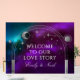 Señal Acrílica Welcome To Our Love Story Purple Teal Celestial