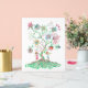 A vibrant drawing depicts a fantasy tree with colorful flowers and swirling branches. Two people stand at the base, one playing an instrument.