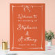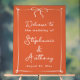 Un elegante cartel de boda acrílico con un cálido fondo de atardecer italiano y un delicado marco blanco con esquinas de nudos y un elegante arco. Una declaración perfecta para ceremonias románticas modernas y celebraciones de verano.