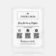 Medios sociales acrílicos y señas de pago para tu pequeña empresa personalizadas con tu logo, códigos QR y medios sociales. Agregue su nombre o etiqueta en un guión encantador junto con otro texto adicional para satisfacer sus necesidades, todo en negro contra pintura blanca impresa. Magnífico símbolo de la pintura blanca acrílica de la pequeña empresa donde se pueden añadir códigos QR para medios sociales y pagos bajo iconos negros de Instagram, TikTok y Venmo junto con tu logo y texto personalizado adicional.