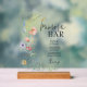 El cartel acrílico claro del Mimosa Bar cuenta con flores silvestres delgadas, perfectas para su ducha de bebé. CAMBIAR EL TAMAÑO para que se ajuste a su evento y pedido con o sin un soporte de madera. COINCIDIENDO elementos de nuestra colección.