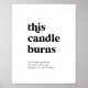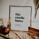 Esta señal conmemorativa moderna negra esta vela arde es perfecta para una boda sencilla. El diseño minimalista en negro y blanco presenta una fuente retro pero contemporánea con un toque rústico bohemio único. Perfecto para cualquier temporada. Manténgalo minimalista, tal como está, o agregue sus propios gráficos y obras de arte.