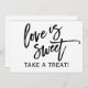 Letrero de buffet de dulces "El amor es dulce" con letra Script Brush (Negro): Decore la barra de dulces / mesa de buffet de su boda con este letrero moderno de caligrafía de pincel. Está configurado con un negro rico, pero puede cambiar el color en su extremo simplemente cambiando el color de fondo.