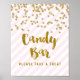 Cartel de barra de dulces para baby shower, despedida de soltera o boda en patrón de rayas rosa pastel claro y blanco con confeti dorado y letras a mano. Perfecto para una baby shower, boda o despedida de soltera.