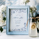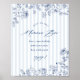 Nuestra señal de papel presenta clásicas rayas de chambray y arte de línea floral navy. Agregue este cartel a un marco para invitar a sus invitados a preparar sus propias mimosas en su despedida de soltera "algo azul".