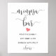 Un cartel de una barra de mimosa con una fuente informal moderna y espacio para editar su propio mensaje. También puedes cambiar el color del corazón. Este signo tiene etiquetas coincidentes en nuestra categoría de favores de boda.