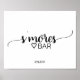 Esta señal de barra de S'mores de caligrafía negra simple es perfecta para una boda con tema rústico o moderno. El diseño minimalista presenta una elegante fuente de letra de pincel y un corazón femenino encantador.