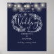 Con luces de cuerda de bonito, este elegante cartel de bienvenida floral puede ser personalizado con su información en letras de moda en un fondo azul marino. Diseñado por Thisisnotme©
