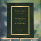 Moderno clásico de color verde esmeralda oscuro y falso oro de moda minimalista tipografía personalizado acrílico opaco boda de bienvenida plantilla de señalización de bienvenida. Adecuado para un elegante boda formal.