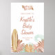 Baby on Board, el cartel de bienvenida para una ducha de bebé, es un signo neutro de ducha de bebé con una temática inspirada en el boho y el surf. La invitación coincidente está disponible. Con una tabla de planchar y hojas de palma de madera, este diseño es perfecto para su bebé a bordo.