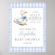 Este encantador cartel de bienvenida para una ducha bebé cuenta con un bonito ganso y un fondo azul de gingham y puede ser personalizado con su nombre y fecha especial. Diseñado por Thisisnotme©