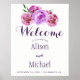 Moda y boda elegante poster de señas con peonías de rubor y escritura de ciruela púrpura sobre fondo blanco Por favor tenga en cuenta que el color de fondo es editable. Puede cambiarlo, así como los tipos de letra y color, después de seleccionar el botón PERSONALIZAR.