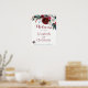 Moda y boda elegante poster de señas con peonías rojas borgoñas y blancas con ramas de abetos de temporada invernal, bayas rojas y follaje y con letras de libreto rojo personalizado sobre fondo blanco Por favor, tenga en cuenta que el color de fondo es editable. Puede cambiarlo, así como los tipos de letra y color, después de seleccionar la opción PERSONALIZAR.