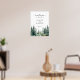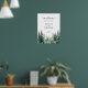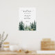 Rústico y moderno nombre de novios y novios bodas color verde azulado transparente señalización de bienvenida imprimible poster con un moderno guión caligráfico escrito a mano y un paisaje acuarela de pinos de invierno. ++++++++++++ Adecuado para bodas de destino de montaña forestal.