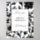 Flores negras y blancas vintage elegante signo de bienvenida de boda, flores botánicas formales simples bienvenida signo de decoración de entrada personalizada