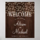Moda y elegante poster de señas bodas con luces rústicas de trineo sobre fondo de madera de grano marrón. Ideal para tu otoño nocturno | noche de temática rústica | boda nocturno.