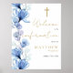 Esta elegante señal de bienvenida de confirmación floral transparente azul polvoriento puede ser personalizada con su información en tipografía chic. Diseñada por Thisisnotme©