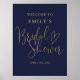 Este sencillo y elegante signo de bienvenida de ducha de novia azul marino y dorado se puede personalizar con tu nombre y fecha especial. Diseñado por Thisisnotme©