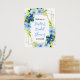 Este bonito y elegante cartel de bienvenida presenta una acuarela de flores azul marino y azul marino con follaje. El texto combina el guión manuscrito y las fuentes serif para un aspecto elegante y moderno. Es perfecto para una ducha casera rústica de primavera o verano.