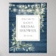 Con luces de cuerda de bonito y delicadas hojas de color agua en un fondo rústico de madera azul, este cartel de bienvenida de moda puede ser personalizado con su evento especial de ducha de novia. Diseñado por Thisisnotme©