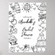 Bienvenido a los huéspedes con este elegante cartel de ducha de novia que muestra "Bienvenidos a la ducha de novias" en una sofisticada mezcla de fuentes de serif y script en negro, con la fecha de ducha mostrada debajo. El diseño incluye delicados ilustraciones hechos a mano en negro, como una brillante bola de discoteca, una torre de champán, campanas bodas y corazones, lo que añade un toque caprichoso y refinado. Personalizable completo, se puede ajustar el texto, los colores y las obras de arte para que coincidan con el tema de la ducha de novia. Disponible en una versión impresa o puede comprar como archivo digital descargable para imprimir en casa o localmente.