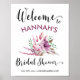 Señal de bienvenida a la ducha de novia que puede personalizar con la novia el nombre, la fecha y el lugar (o el texto de su personalizado). El diseño presenta un esquema floral acuático de lavanda, flores y follaje, con letras caligráficas y tipografía audaz moderna. Este letrero forma parte de nuestra colección Lavender y Lilacs - por favor visite nuestra tienda para coordinar invitaciones y accesorios.