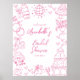 Bienvenido a los huéspedes con este elegante cartel de ducha de novia que muestra "Bienvenidos a la ducha de novias" en una sofisticada mezcla de fuentes de sif y script en rosa, con la fecha de ducha mostrada debajo. El diseño incluye delicados ilustraciones hechos a mano en rosa, como una brillante bola de discoteca, una torre de champán, campanas bodas y corazones, lo que añade un toque caprichoso y refinado. Personalizable completo, se puede ajustar el texto, los colores y las obras de arte para que coincidan con el tema de la ducha de novia. Disponible en una versión impresa o puede comprar como archivo digital descargable para imprimir en casa o localmente.