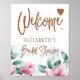 Un moderno y glamoroso resorte o ducha de novias de verano poster de señas de bienvenida con flores de magnolia rosa de color agua, follaje verde y hojas de eucalipto y un elegante guión de caligrafía de purpurina de cobre de estilo manuscrito escrito a mano sobre un fondo azul lavado. ++++++++++ Es fácil personalizarlo con el nombre de la novia. ++++++++ Ideal para fiestas de boda elegantes y modernos, con cristal floral, jardín al aire libre o patio trasero.