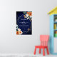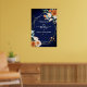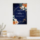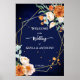 Naranja y rosas blancas sage eucalipto verde fondo azul marino dorado marco geométrico floral nombre personalizado boda signo de bienvenida poster descarga instantánea