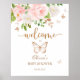Cartel de bienvenida para la ducha de bebé de los rosas de Rubor. Señal de bienvenida de mariposa. Elementos coincidentes disponibles.