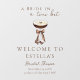 Novia en Tini Bits Martini Bridal Ducha Espejo Pegatina Cartel de bienvenida con café frijol y Coquette Mocha Brown Bow - Con una acuarela elegante ilustracion del café, espresso martini con una cremosa, espumoso y tres granos de café como guarnición. Un puñado de granos de café yacen en la parte inferior y una coqueta marrón se ata alrededor del tallo del vidrio martini. Perfecto para una ducha nupcial de primavera, verano o otoño. Con una combinación de caligrafía de escritura y un elegante tipo de letra de bloque, este signo de bienvenida de la ducha de moda nupcial exuda sofisticación y elegancia intemporal. Ponte en tu espejo favorito para ver el cartel de bienvenida de una maravillosa ducha de matrimonio. Bienvenido a tu huésped con este cartel de bienvenida de ducha de matrimonio con temática espresso martini. Edite con sus propios detalles del evento.