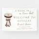 Una novia en un cartel de bienvenida de Tini Bit Martini Bridal Shower Banner con habas de café y Coquette Mocha Brown Bow - con un elegante ilustracion acuarela del cóctel de café, espresso martini con una crema, espumoso y tres granos de café como guarnición. Un puñado de granos de café yacen en la parte inferior y una coqueta marrón se ata alrededor del tallo del vidrio martini. Perfecto para una ducha nupcial de primavera, verano o otoño. Con una combinación de caligrafía de escritura y un elegante tipo de letra de bloque, este signo de bienvenida de la ducha de moda nupcial exuda sofisticación y elegancia intemporal. Bienvenido a tu huésped con este cartel de bienvenida de ducha de matrimonio con temática espresso martini. Edite con sus propios detalles del evento.