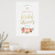 Un cartel de bienvenida que coincide con nuestra "Invitación a la ducha de novias con el corazón del champagne Gold Brunch & Bubbly". Este diseño presenta "bienvenido" en texto curvado sobre dos copas de champán que se aferran a la piel, el nombre de la futura novia y "ducha de novias" en un moderno guión de imitación de oro. La fecha aparece debajo, encima de un ramo de flores de color agua.