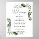 Este elegante cartel de bienvenida de las parejas florales de color verde oliva se puede personalizar con su información en la tipografía moderna. Diseñado por Thisisnotme©