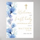 Esta elegante señal de bienvenida de Primera Comunión floral transparente azul sucio puede personalizarse con su información en tipografía chic. Diseñado por Thisisnotme©