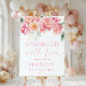 Este cartel de bienvenida para una ducha de bebé presenta un diseño floral de primavera rosa rosa chispeante. El encabezado del guión es una imagen que no se puede editar. El resto del texto es totalmente editable. Para una personalización más avanzada de este diseño, simplemente seleccione el botón "Personalizar" de arriba.
