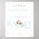 Bienvenidos invitados con estilo con nuestro elegante poster de señas de bienvenida "We can bearly wait", con temática temática de ducha de bebé, con un lindo oso de peluche durmiendo en la nube rodeado de comienzos. Este encantador cartel es el toque perfecto para saludar a los huéspedes con sofisticación y marcar el tono para una dulce moda celestial temática, refinada celebración.