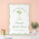 Bienvenidos a su ducha de novias con este alegre cartel de "Margs and Matrimony", perfecto para una fiesta de amor divertido o una celebración temática de tequila. Con un cristal de margarita dibujado a mano, un borde ondulado y acentos verde tilo, este letrero de bienvenida editable marca el tono para un fiesta que es igual de moda de partes y descarado.