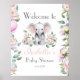 Este encantador ilustracion de mano cuenta con un elefante de bebé sentado entre delicadas peonías y hojas de eucalipto, creando una atmósfera serena y caprichosa para el signo de bienvenida de su ducha de bebé. Simplemente haga clic en el botón "Personalizar" para añadir los detalles de su fiesta y hacerlo único suyo.